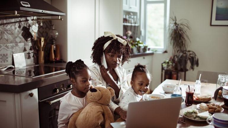 Larin Brink worked in the TV and film industry as an assistant props master before she had children. She now works at Virginia Commonwealth University in Richmond, Virginia, a job that allows her to be more available to her family. Her earnings no longer match her husband’s, and his frequent back-to-back meetings mean she often handles things like virtual schooling or trips to the pediatrician.